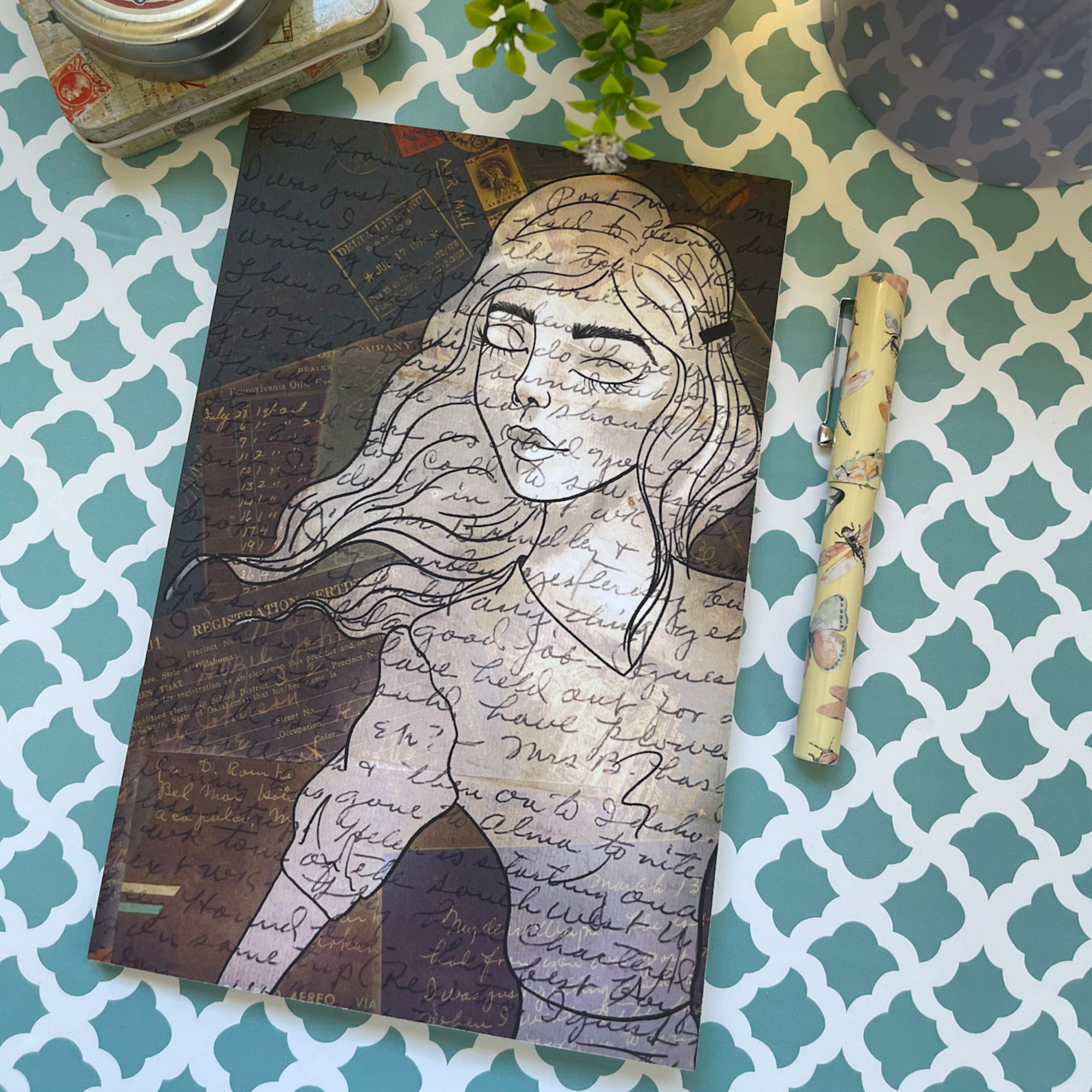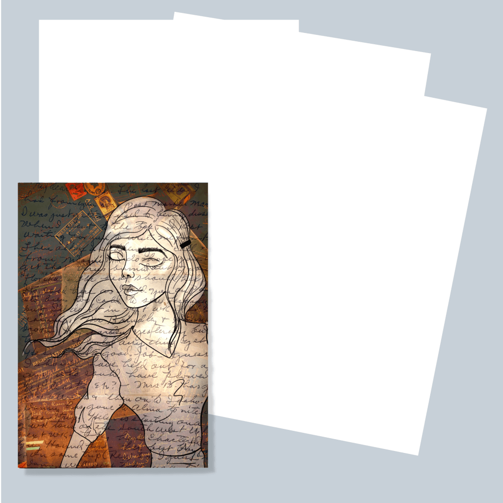 This time the cover design came before the actual size or style needed. I was putting together new vintage ephemera packs with my latest vintage finds and I just loved the way the papers looked all weathered and tattered with the old script fading into the paper. I decided to convert one of my drawings into digital and then use the vintage ephemera as a background. I loved the design so much that I knew I had to make it a journal. I’m typically a girl who likes a thicker journal, but I’d been needing a thinner journal, so I decided to create a 100-page journal this time.