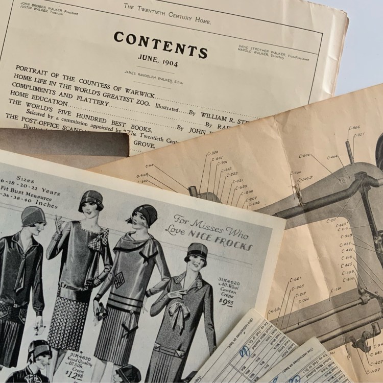 Collections of letters between a husband and wife while he was on a ship in the 1950s. War ration booklets with coupons still inside. A 1905 copy of Cosmopolitan Magazine. It’s about 4 inches thick and full of articles, photographs, and illustrations that share a glimpse into the world at that time. A memory book from a young girl during her Senior Year of High School. And so much more.