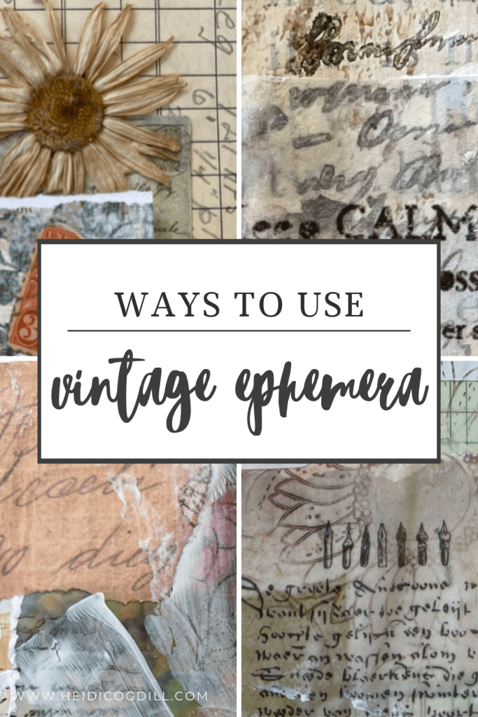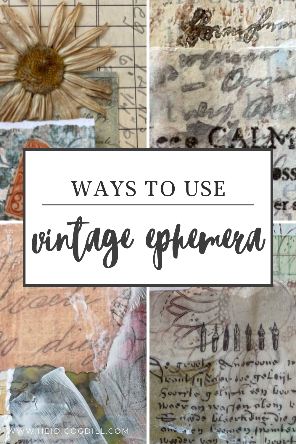- Create a collage. Find a piece of poster board or other backing, then start arranging the vintage paper ephemera to create a beautiful collage. Cut the pieces out and arrange them in a creative way, and use glue or tape to secure them in place.