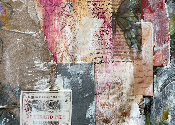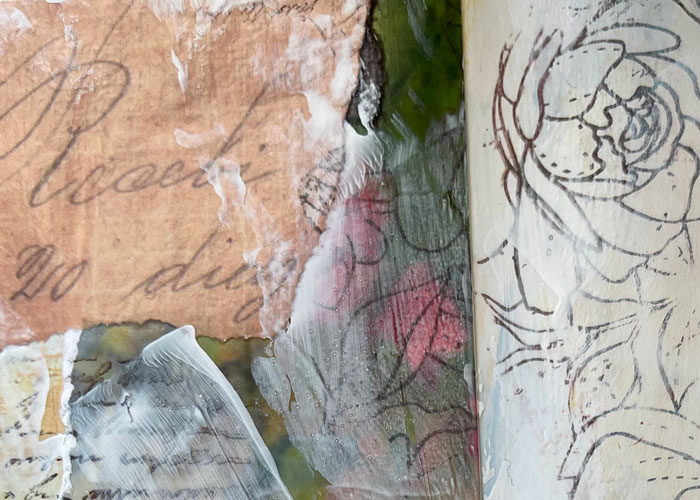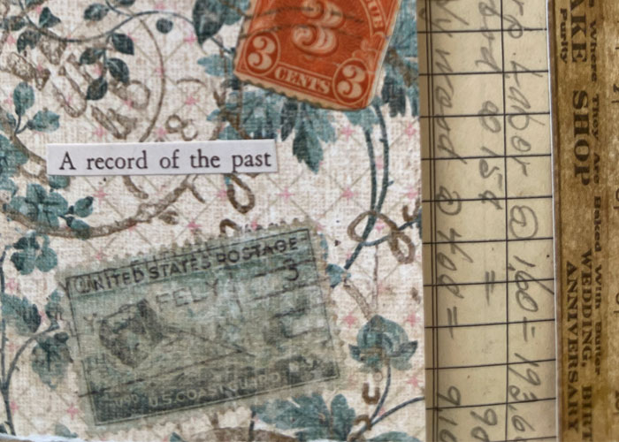 - Art journaling. Include vintage papers, photos, postcards, etc with paints, magazine cutouts, and scrapbook papers as backgrounds for your art, or by layering and distressing to create texture on your pages.