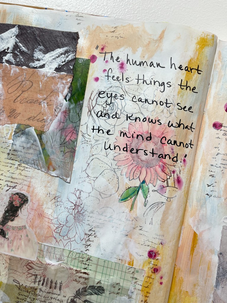 - Add quotes, lyrics, and passages: Incorporate quotes and passages from your favorite books, poems, or lyrics. Use these to express your thoughts and feelings or to add a layer of depth and meaning to your art journaling.
