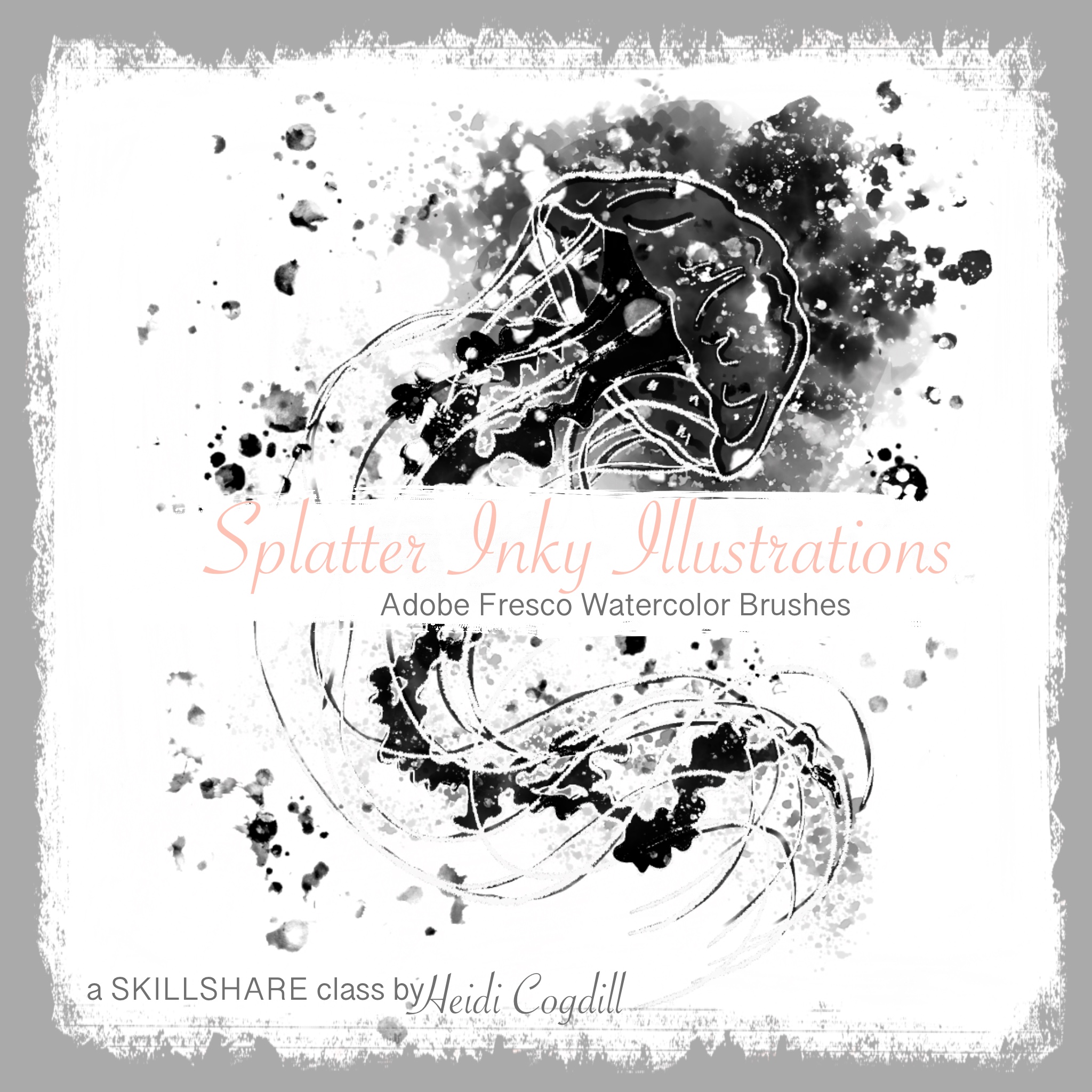 In this class, students will learn to use Adobe Fresco’s Live Watercolor Brushes to create two Inky Splatter Illustrations.